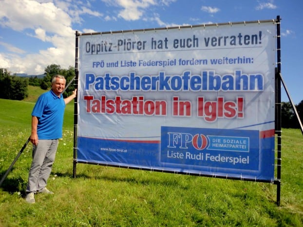 FPÖ – Plakatkampagne in Igls für eine Talstation in Igls. Foto FPÖ