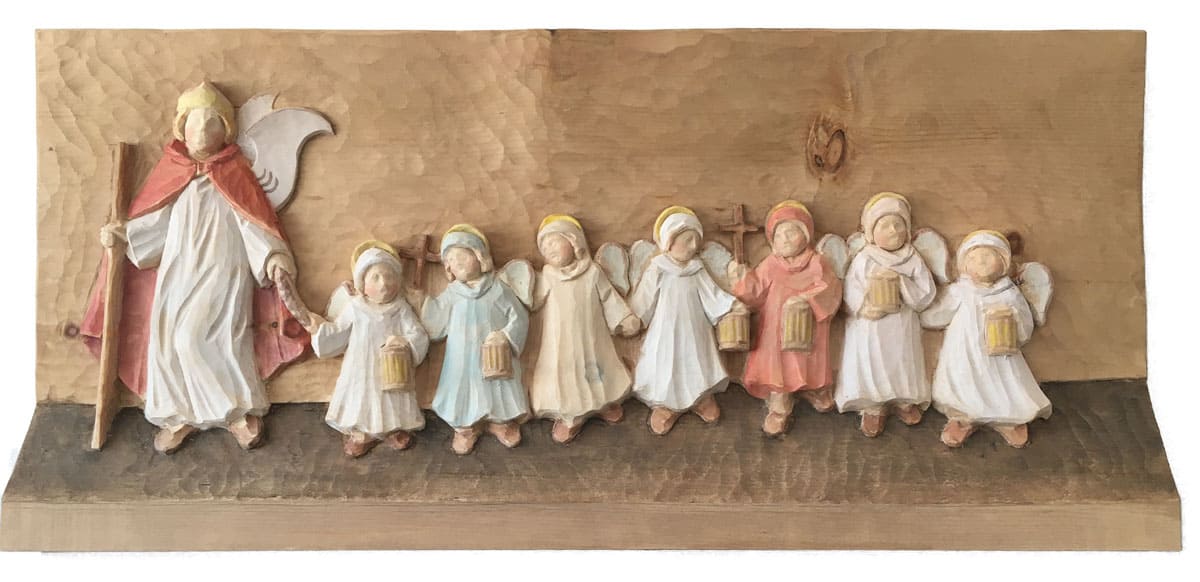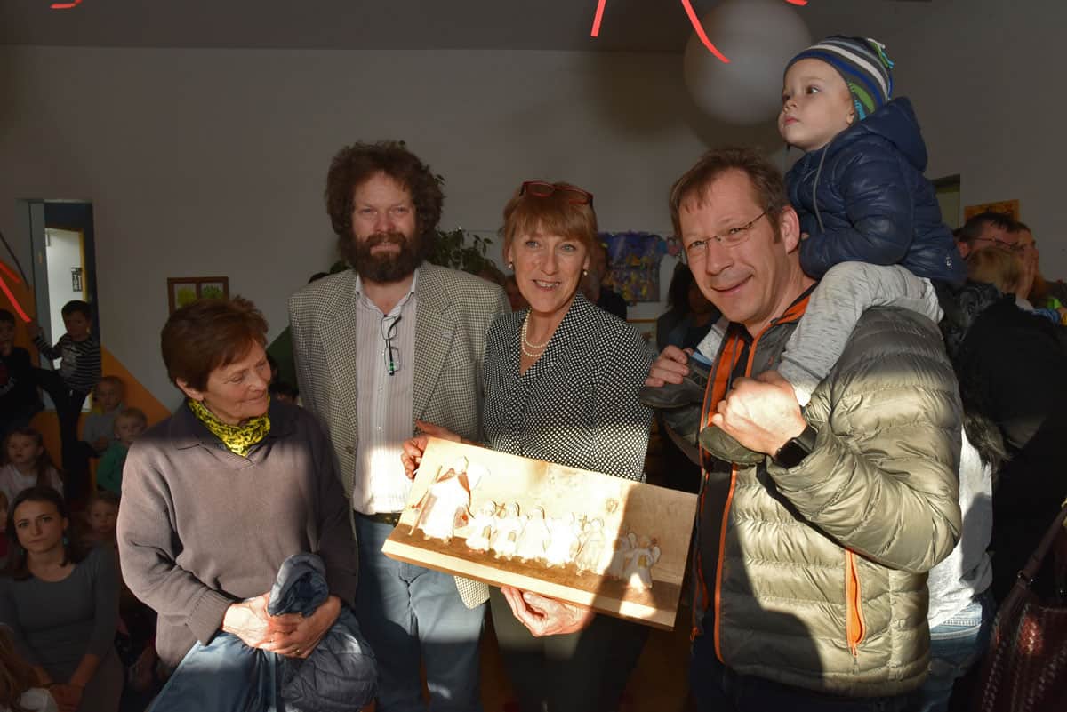 Als Dank für ihren großen Einsatz in unseren Stadtteil überreichte die Stadtteilvertretung ein Relief mit der Kindergarten-Engel-Gruppe bei der Bergweihnacht geschnitzt von Josef Reindl.